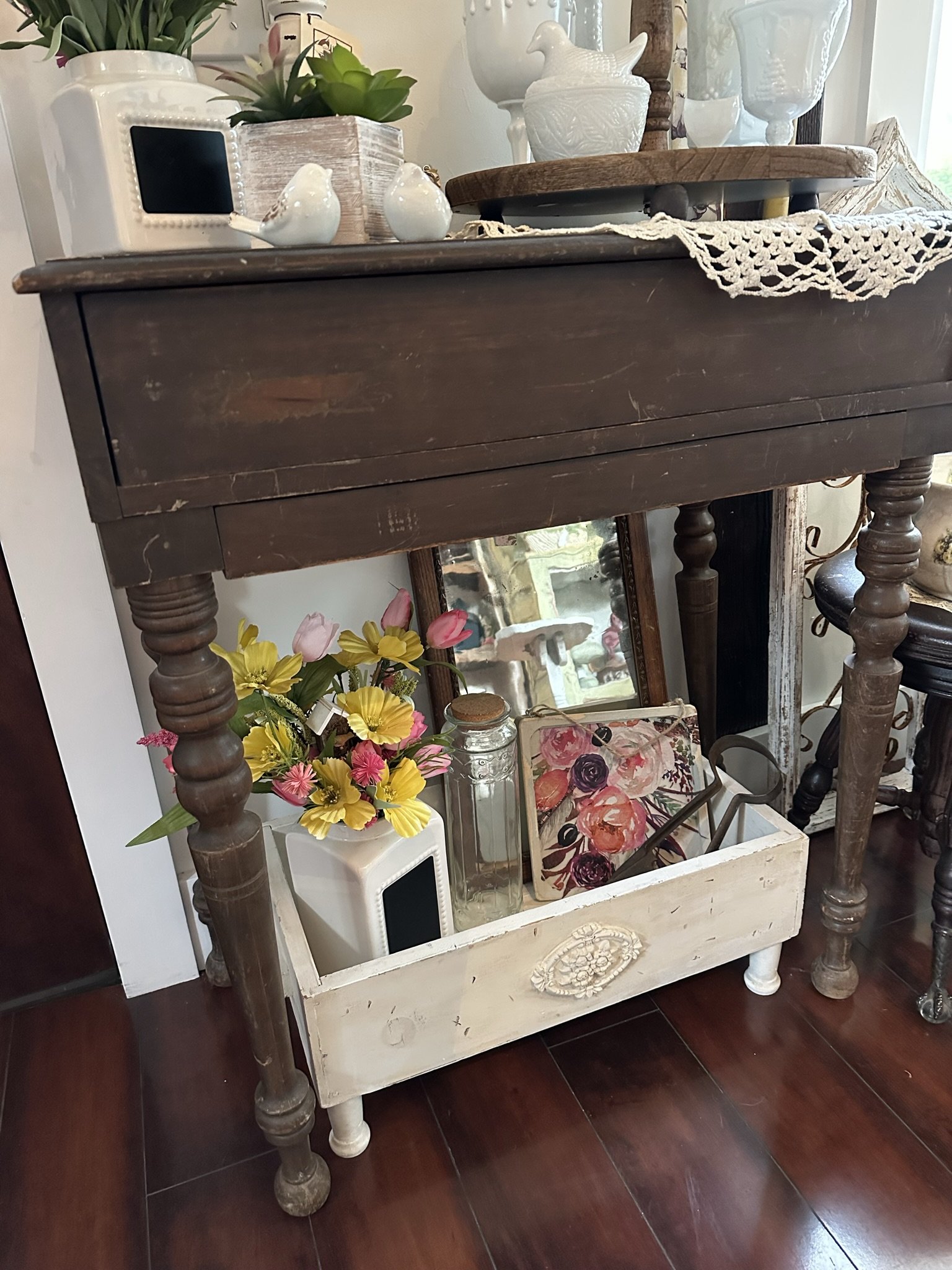 Our furniture pieces go through a process that generally includes cleaning, repairing/repurposing, painting, and distressing. While we usually start off with furniture that is in need of a little TLC, we also have other pieces that are beautiful just as they are.